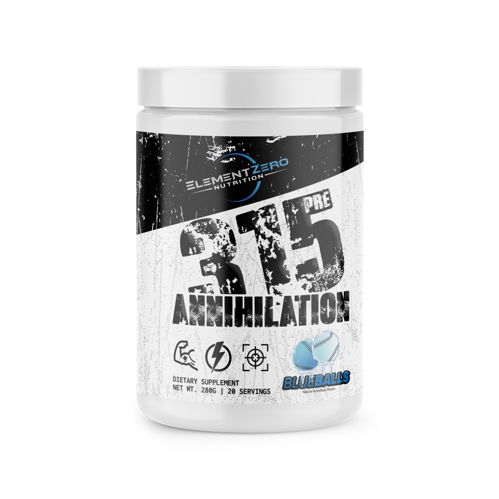 315pre ANNIHILATION is a hard-hitting pre-workout delivering insane amounts of energy, acute mental focus and skin-tearing pumps. Annihilate your workout!